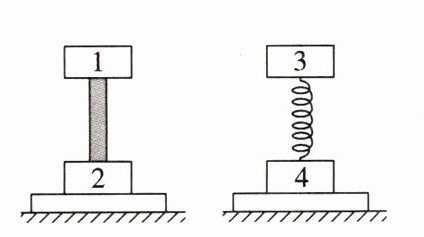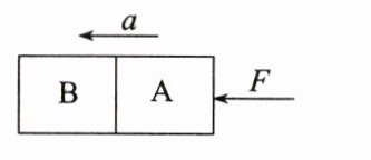 4. 1966年人们曾在地球的上空完成了以牛顿第二定律为基础的测定质量的实验。实验时,用质量为$m_1$的双子星号宇宙飞船A去接触正在轨道上运行的质量为$m_2$的火箭组B(后者的发动机已熄火)。接触以后,开动双子星号飞船的推进器,使飞船和火箭组共同加速(如图所示)。推进器的平均推力F = 895N,推进器开动时间为7s,测出飞船和火箭组的速度变化量是0.91m/s。双子星号飞船的质量$m_1 = 3400kg$,求火箭组的质量$m_2$。(结果保留一位小数)