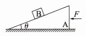 3. 如图所示,质量为M的斜面体A置于粗糙水平地面上,斜面体与水平地面间的动摩擦因数为μ,物体B与斜面间无摩擦。在水平向左的推力F作用下,A与B一起做匀加速直线运动,两者无相对滑动。已知斜面的倾角为θ,物体B的质量为m,则它们的加速度a及推力F的大小为( )