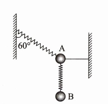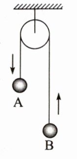 1. 如图所示,轻质滑轮两侧轻绳子上分别系有小球A和小球B,两球质量分别为$m_A$、$m_B$,两球从静止开始运动后,小球A下降,小球B上升。重力加速度为g,两球运动过程中轻绳拉力为( )