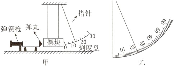 ③让摆块静止在平衡位置,扳动弹簧枪的扳机,把弹丸射入摆块内,摆块和弹丸推动指针一起摆动,记下指针的最大偏角;