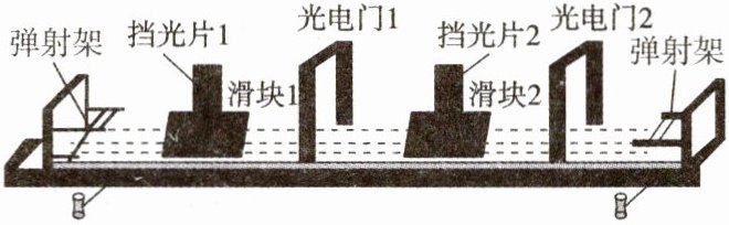 ⑧测出挡光片的宽度$d = 5 mm$,测得滑块1(包括弹性碰撞架)的质量$m_1 = 300 g$,滑块2(包括弹性碰撞架)的质量$m_2 = 200 g$。
