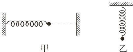 如图甲、乙所示,两装置可以看成水平方向、竖直方向的弹簧振子,试说明需要满足的条件。(注意:弹簧振子为理想化模型,类似于质点、点电荷模型)