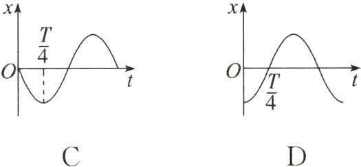 3. D 解析:由4T时刻振子中小球具有最大速度可知,此时刻小球的位移为0,故A、C错误;由4T时刻小球具有正方向的最大速度可知,此时小球由负向位移处向正向位移处运动,B错误,D正确。