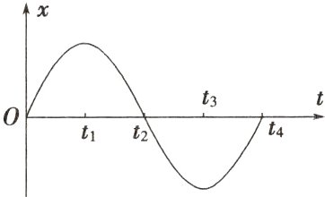 CD 解析:由题图读出 $t_1$、$t_3$ 时刻摆球位移最大,说明摆球在最大位移处,速度为 0,回复力最大,合外力不为 0,故 A 错误,C 正确;$t_2$、$t_4$ 时刻位移为 0,说明摆球在平衡位置处,摆球速度最大,悬线对它的拉力最大,故 B 错误,D 正确。