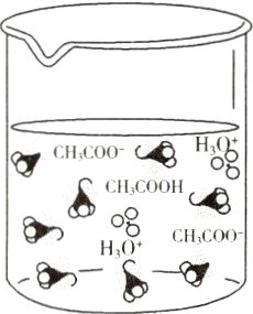 1. 观察HCl、CH₃COOH在水中的电离示意图,在稀溶液中,HCl全部电离生成H⁺和Cl⁻,不存在__________分子;CH₃COOH只部分生成__________,存在CH₃COOH分子。