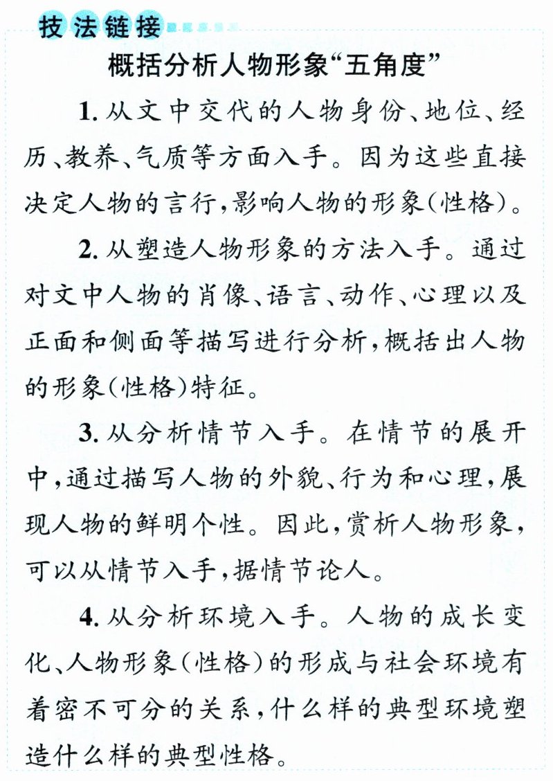 1.文中的邓小平是一个爱护战士、平易近人的首长。文章主要通过语言描写来刻画人物,从邓小平同志与“我”的交谈中可以看出邓小平同志对战士们的关心和爱护。“小鬼”这一亲昵的称呼,更拉近了邓小平同志与战士们之间的关系,显得他尤为平易近人。“小平同志与我们热烈握手”则是运用动作描写,写出了邓小平同志丝毫没有首长架子、平易近人的特征。