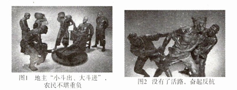 1. 提示:图1反映了在封建社会,地主占有绝大部分土地,通过收取地租等方式,占有农民大部分劳动成果。图2说明了农民阶级的反抗斗争从来没有停止过。这种斗争,常常由分散的小规模的抗租抗税运动,发展成大规模的农民起义或农民战争。