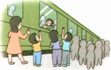 1. 站台上 jǐ( )满了人,爸爸向我和妈妈 huī shǒu( )道别。