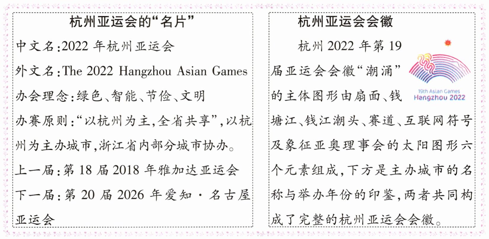 1. 2022年亚运会的主办城市是 ________,此次亚运会是第 ________届亚运会。