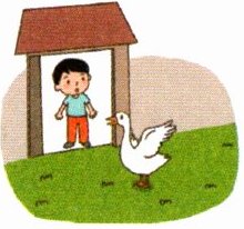 鹅的叫声,音调严肃郑重,似厉声呵斥。它的旧主人告诉我:养鹅等于养狗,它也能看守门户。后来我看到果然如此:凡有生客进来,鹅必然厉声叫嚣;甚至篱笆外有人走路,它也要引吭大叫,不亚于狗的狂吠。