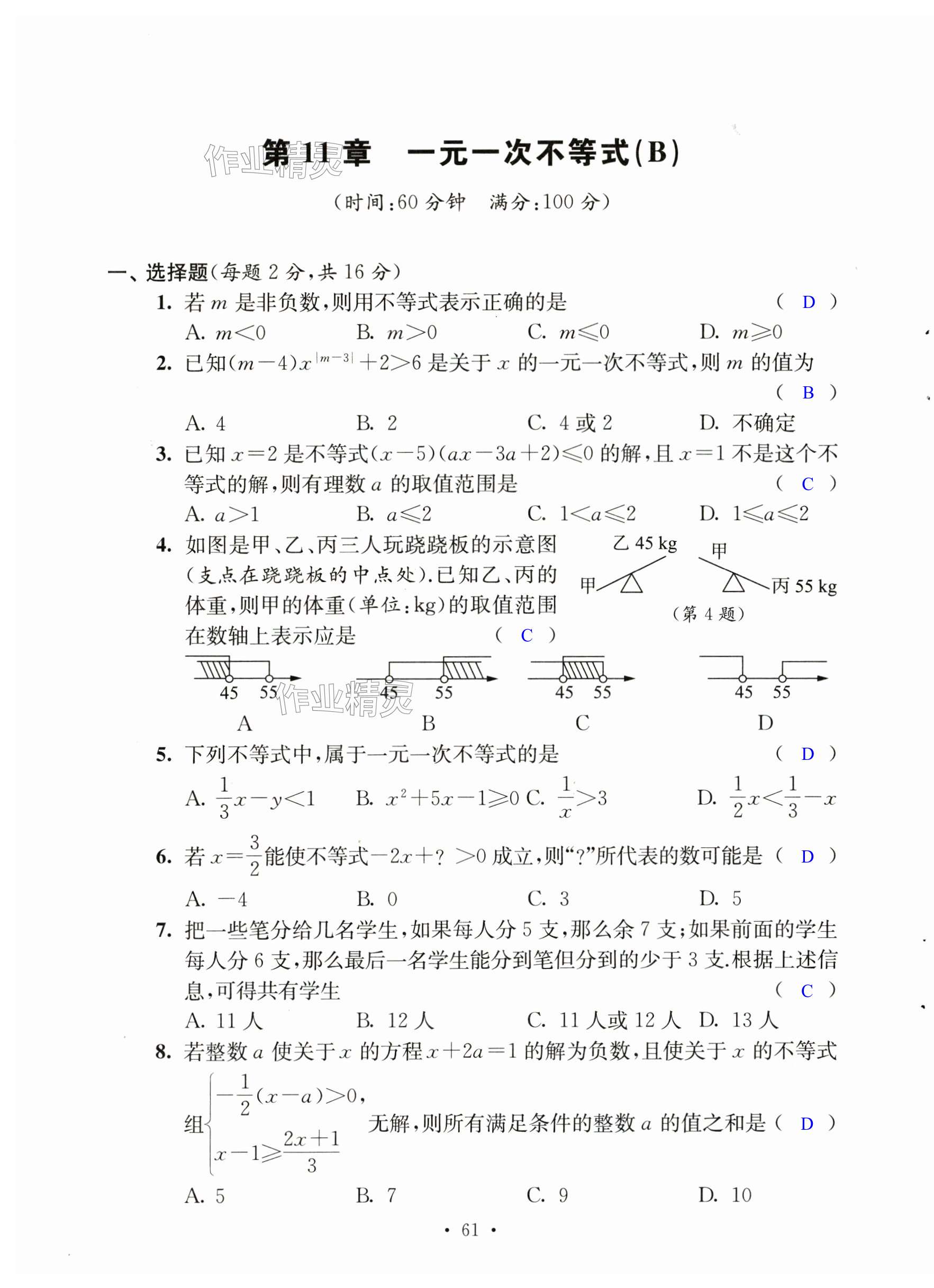 注:目前有些书本章节名称可能整理的还不是很完善,但都是按照顺序排列的,请同学们按照顺序仔细查找。练习册 2025年伴你学活页卷七年级数学下册苏科版 答案主要是用来给同学们做完题方便对答案用的,请勿直接抄袭。