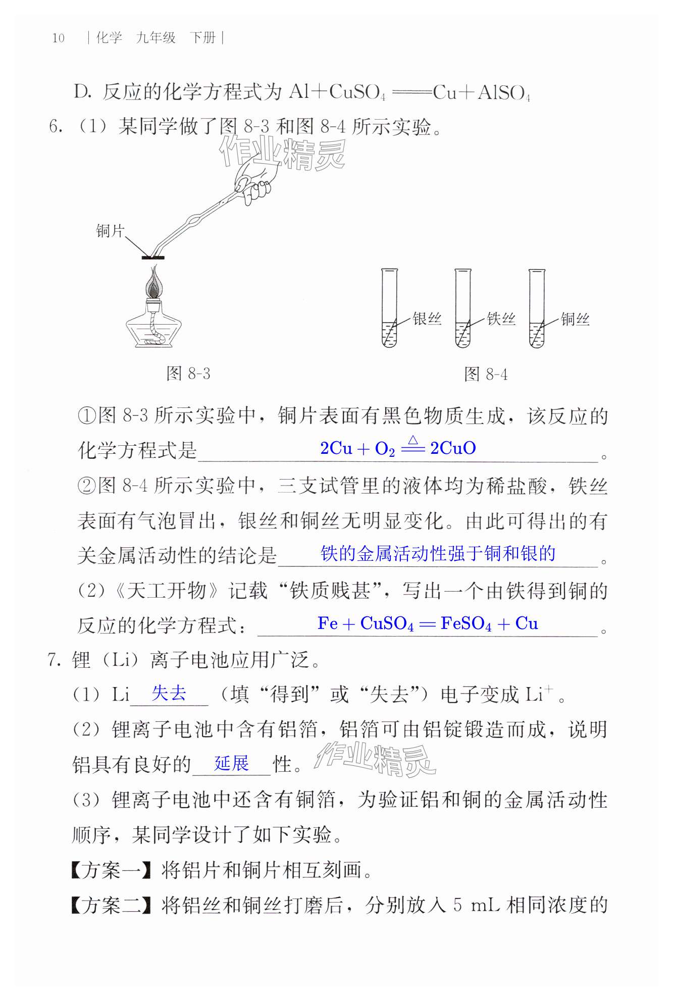 注:目前有些书本章节名称可能整理的还不是很完善,但都是按照顺序排列的,请同学们按照顺序仔细查找。练习册 2025年补充习题江苏九年级化学下册人教版 答案主要是用来给同学们做完题方便对答案用的,请勿直接抄袭。