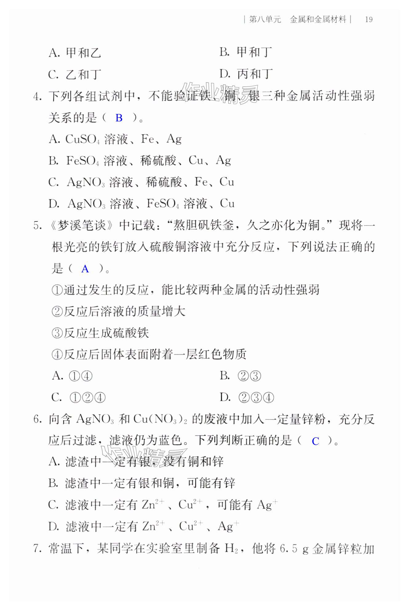 注:目前有些书本章节名称可能整理的还不是很完善,但都是按照顺序排列的,请同学们按照顺序仔细查找。练习册 2025年补充习题江苏九年级化学下册人教版 答案主要是用来给同学们做完题方便对答案用的,请勿直接抄袭。