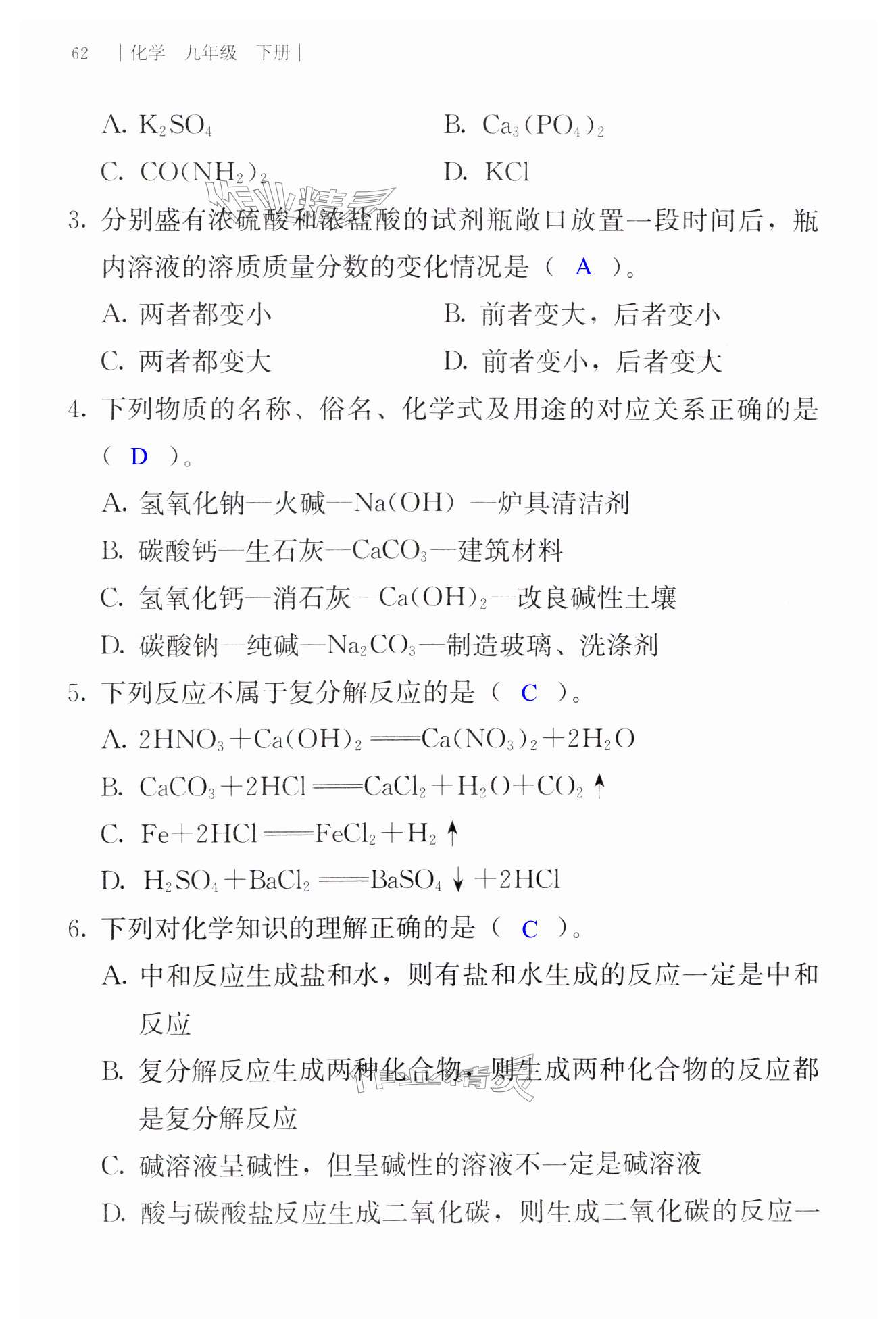 注:目前有些书本章节名称可能整理的还不是很完善,但都是按照顺序排列的,请同学们按照顺序仔细查找。练习册 2025年补充习题江苏九年级化学下册人教版 答案主要是用来给同学们做完题方便对答案用的,请勿直接抄袭。