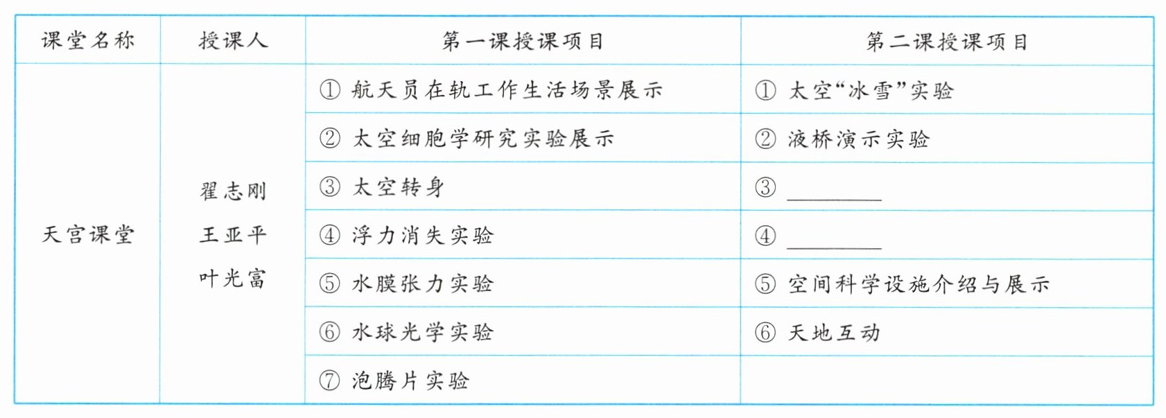 ②“天宫课堂”是为发挥中国空间站的综合效益推出的首个太空科普教育品牌。“天宫课堂”结合载人飞行任务,贯穿中国空间站建造和在轨运营系列化推出,由中国航天员担任“太空教师”,以青少年为主要对象,并采取天地协同互动方式开展教学。