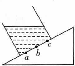 5.(3分)如图所示,装有水的容器静止在斜面上,其底部a、b、c三处受到水的压强分别为$p_{a}$、$p_{b}$、$p_{c}$,则以下判断正确的是 ( )