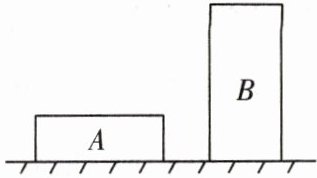 20.(双选)如图所示,放在水平地面上的两个实心长方体A、B,已知体积$V_{A}<V_{B}$,高度$h_{A}<h_{B}$,与地面的接触面积$S_{A}>S_{B}$,对地面的压强$p_{A}=p_{B}$。下列判断正确的是( )