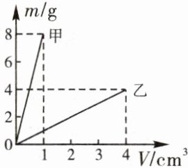 19. 甲、乙两种物质的质量和体积的关系图像如图所示。若用质量相等的甲、乙两种物质分别制成等高的实心圆柱体A、B,把它们并排竖直放在水平地面上,则两圆柱体A、B对水平地面的压强之比是( )