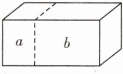 18. 有一质地均匀的实心长方体放在水平地面上,对地面的压强为$p_{1}$;若把长方体沿图示的虚线方向竖直切成$a$、$b$两部分,使$b$的体积是$a$的二倍,取走$a$后,剩余部分$b$对地面的压强为$p_{2}$。则( )