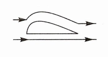 机翼横截面如图所示,飞机前进时,机翼上方气流的速度较________,对机翼上表面的压强较________;机翼下方气流的速度较________,对机翼下表面的压强较________。这样机翼上、下表面就存在压强差,因而有压力________,就产生向上的升力。