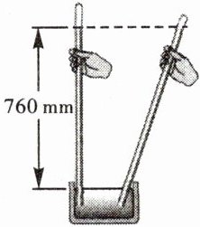 托里拆利@@大气压@@760@@$p = \rho gh$@@$1×10^{5}(1.013×10^{5})$@@气压计