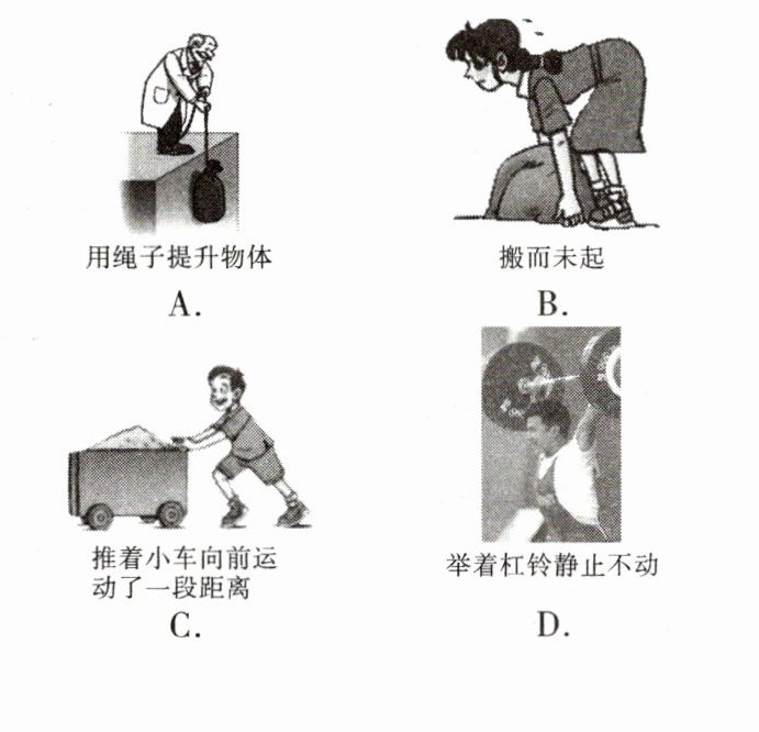 8.用一水平推力使重为800 N的小车在水平道路上匀速直线前进了10 m后撤去推力,小车又前进了2 m停下来。若推力对小车做的功为400 J,则推力大小是( )
