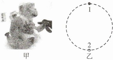 8. 图甲中玩具猩猩手中的香蕉以相同大小的速度转动。如图乙所示,香蕉(看成点)从最高位置1转到最低位置2的过程中,其动能_______、重力势能_______、机械能_______。(均填“变大”“不变”或“变小”)