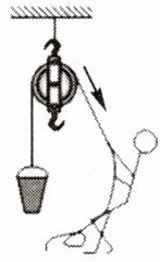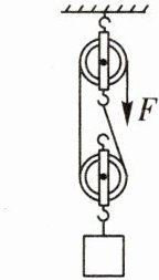 4. (2024·重庆)建筑工人通过如图所示的装置将一桶质量为45 kg的涂料从地面提起,桶离开地面后在4 s内缓慢上升0.8 m,工人所用的拉力为500 N,$g$取10 N/kg。下列说法中正确的是( )