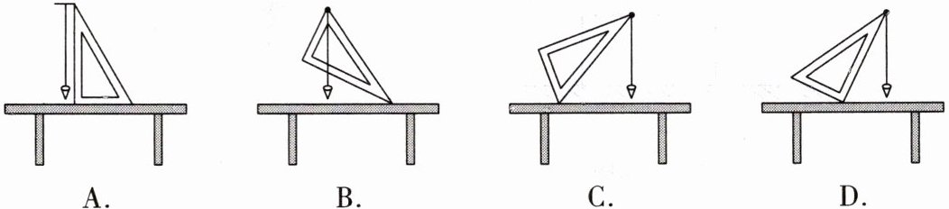 5.(3分)利用铅垂线和三角尺判断桌面是否水平,下图所示的做法正确的是 ( )