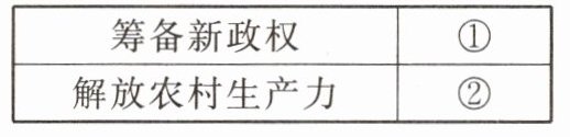 9.1949年3月23日,中共中央机关离开西柏坡前往北平。毛泽东在出发时说:“今天是进京的日子,进京赶考去。”下表内容为进京后所完成的两项重要任务,表中①②分别对应的历史事件是 ( )