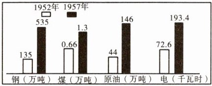 材料四:如下图是1952年和1957年我国工业主要产品产量示意图。