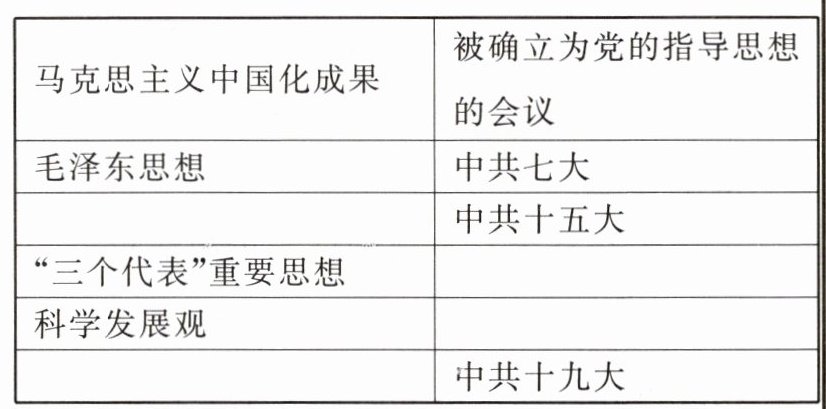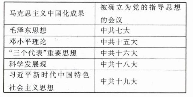 (1)中共二十大。 (2)2022年。 (3)习近平;团结带领全国各族人民全面建成社会主义现代化强国、实现第二个百年奋斗目标,以中国式现代化全面推进中华民族伟大复兴。