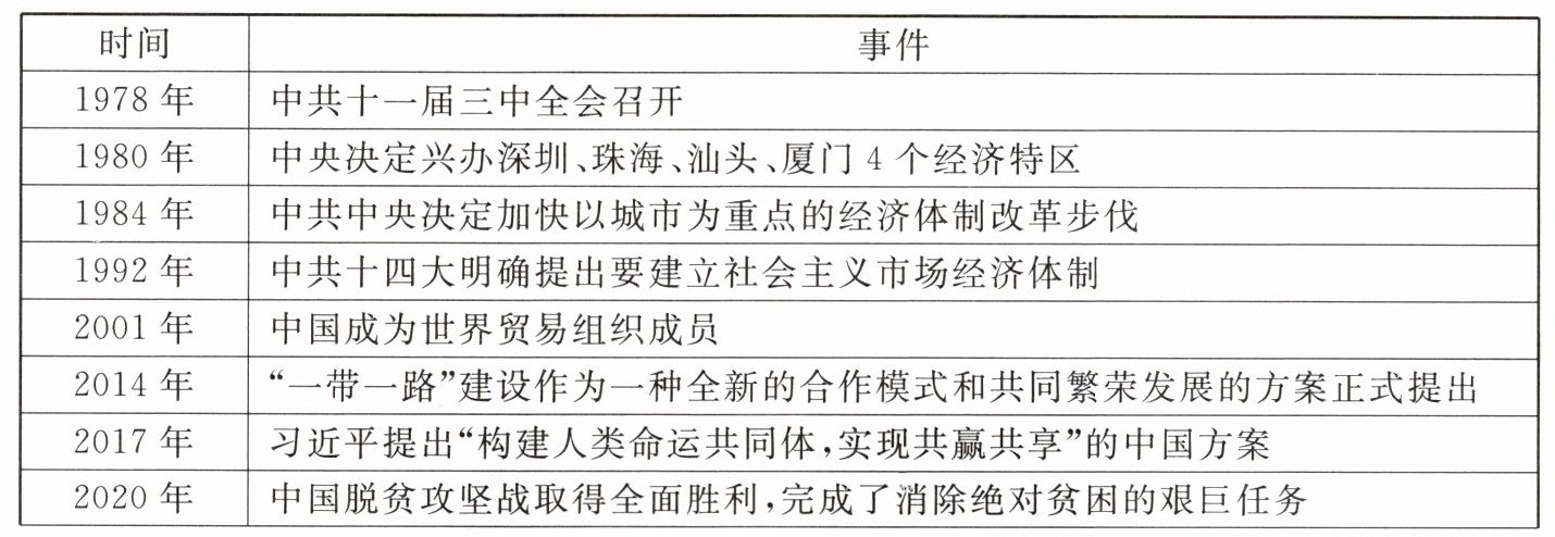 (2)根据上述材料,结合所学知识,完成题为“改革开放是中国的强国之路”的小论文(要求:运用表格中的3~4个史实论证观点,史论结合,条理清楚,6分)