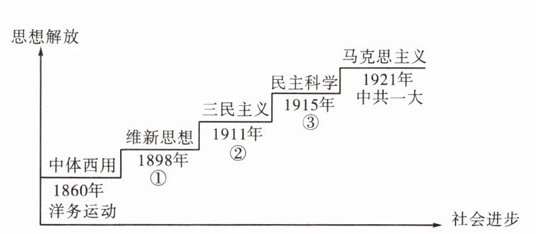 ①戊戌变法;②辛亥革命;③新文化运动。特点:学习西方技术——政治制度——思想文化,由表及里,由浅入深。@@【示例一】观点:改革开放是中国的强国之路。