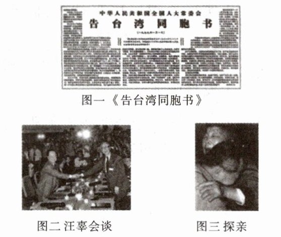 (1)党和政府确立了和平统一祖国的大政方针;“和平统一,一国两制”。 (2)海峡交流基金会、海峡两岸关系协会;海峡两岸同属一个中国,共同努力谋求国家统一;海峡两岸关系的发展迈出了历史性的重要一步。 (3)海峡两岸同胞近40年的隔绝状态终于被打破,两岸关系发生了历史性的变化。