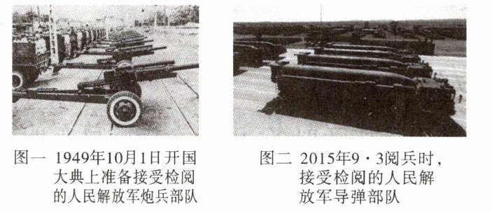 (1)从图一到图二,人民解放军有何巨大变化?此发展变化说明了什么?