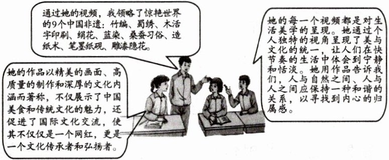 (1)从同学们对李子柒作品的评价中,你能领悟到哪些人文精神?