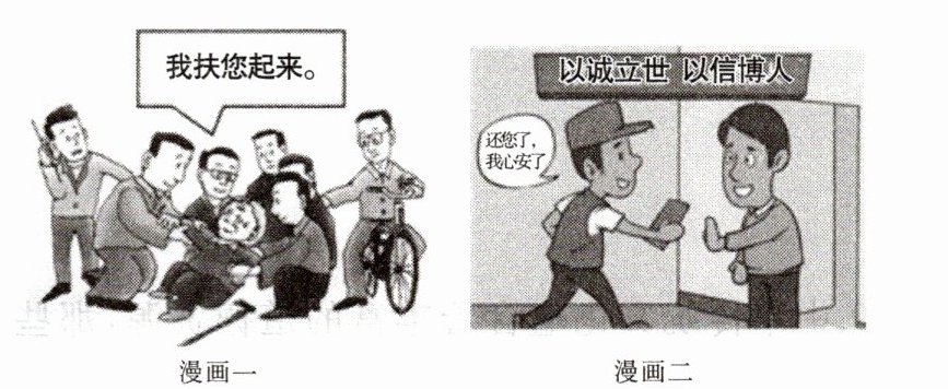 (1)漫画一:助人为乐。漫画二:诚实守信。