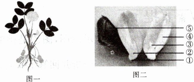 (3)花生是重要的油料作物,油脂主要贮存在图二中的[ ]_______结构中,花生种子萌发时,最终发育成茎和叶的是[ ]_______。