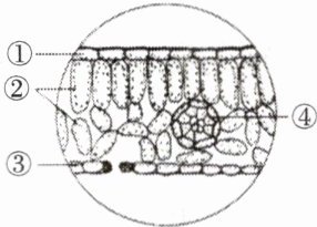 15.下图是蚕豆叶横切面结构示意图,其中含叶绿体最多的部位是 ( )