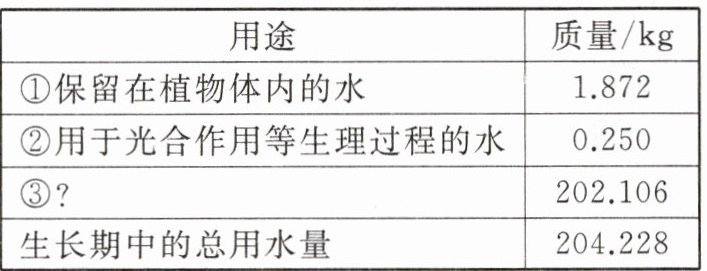 14.9(2024·盐城)玉米一生消耗的水分总量及用途如表所示,你认为用途③是 ( )|