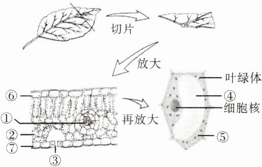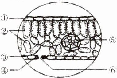 ①@@③@@保护@@叶绿体@@②@@叶肉@@⑤@@叶脉@@筛管@@④@@保卫细胞@@⑥@@气孔@@门户@@器官
