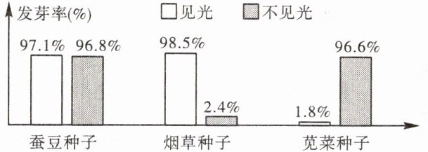 19.(新理念·探究实践)如图表示了三种植物的种子在不同光照条件下的发芽率。据图分析,叙述不正确的是 ( )