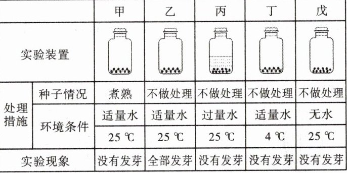 两@@胚根@@根@@解除@@种子@@能否产生种子@@四@@乙和戊@@胚是完整的(或胚是活的、种子不在休眠期等。合理即可)