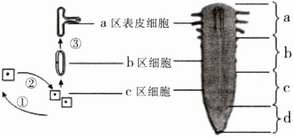 任务一:观察洋葱根尖的结构及生理过程示意图(其中a、b、c表示区域,箭头表示生理过程)。