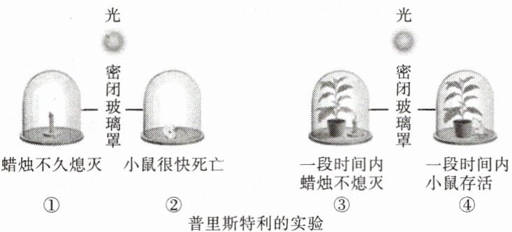 18.居里夫人曾说过:光合作用是地球上最伟大的魔术,根据著名的普利斯特利实验示意图,下列描述中错误的是 ( )