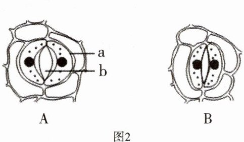 (2)气体进出叶片的门户是图1中的[ ]_______,它是由一对半月形的[a]_______(见图2)组成。