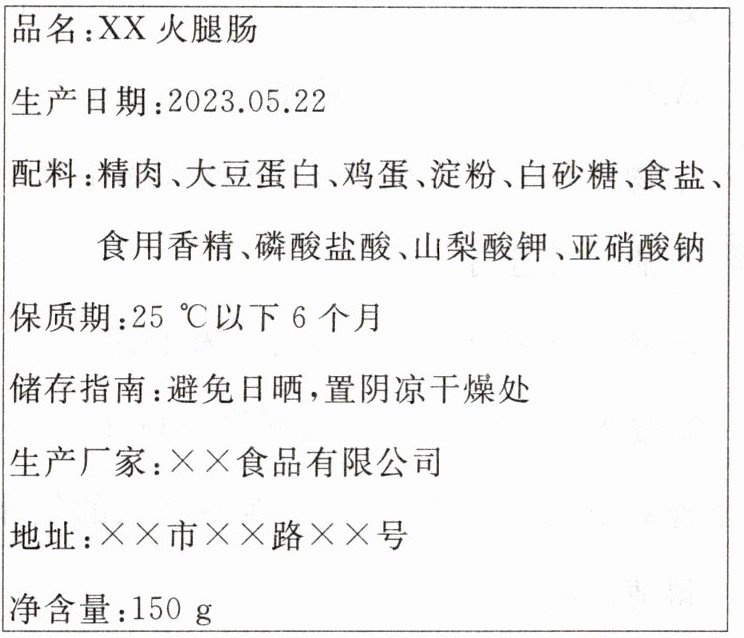 (2)再去超市购买上面与包装上信息完全相同的火腿肠时,你还购买吗? 。为什么 ?(说出依据或理由)