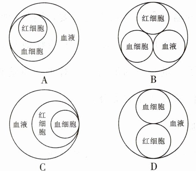 12.下列四幅图中,能够正确表示血液、红细胞、血细胞三个概念之间关系的是( )