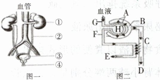 21.图一为人体泌尿系统的组成示意图,图二为尿的形成过程示意图,请据图回答下列问题。